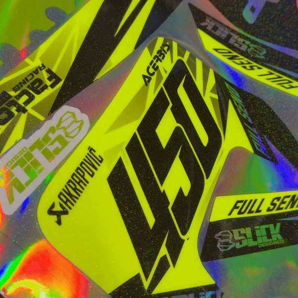 For a sleek, eye-catching look, our Full Chrome finish adds a brilliant, mirror-like shine to your graphics. This shiny finish reflects light beautifully, making your bike, quad, jet ski, or kart stand out on the road or track. It’s the perfect choice for riders who want to turn heads with a high-impact, glossy finish!